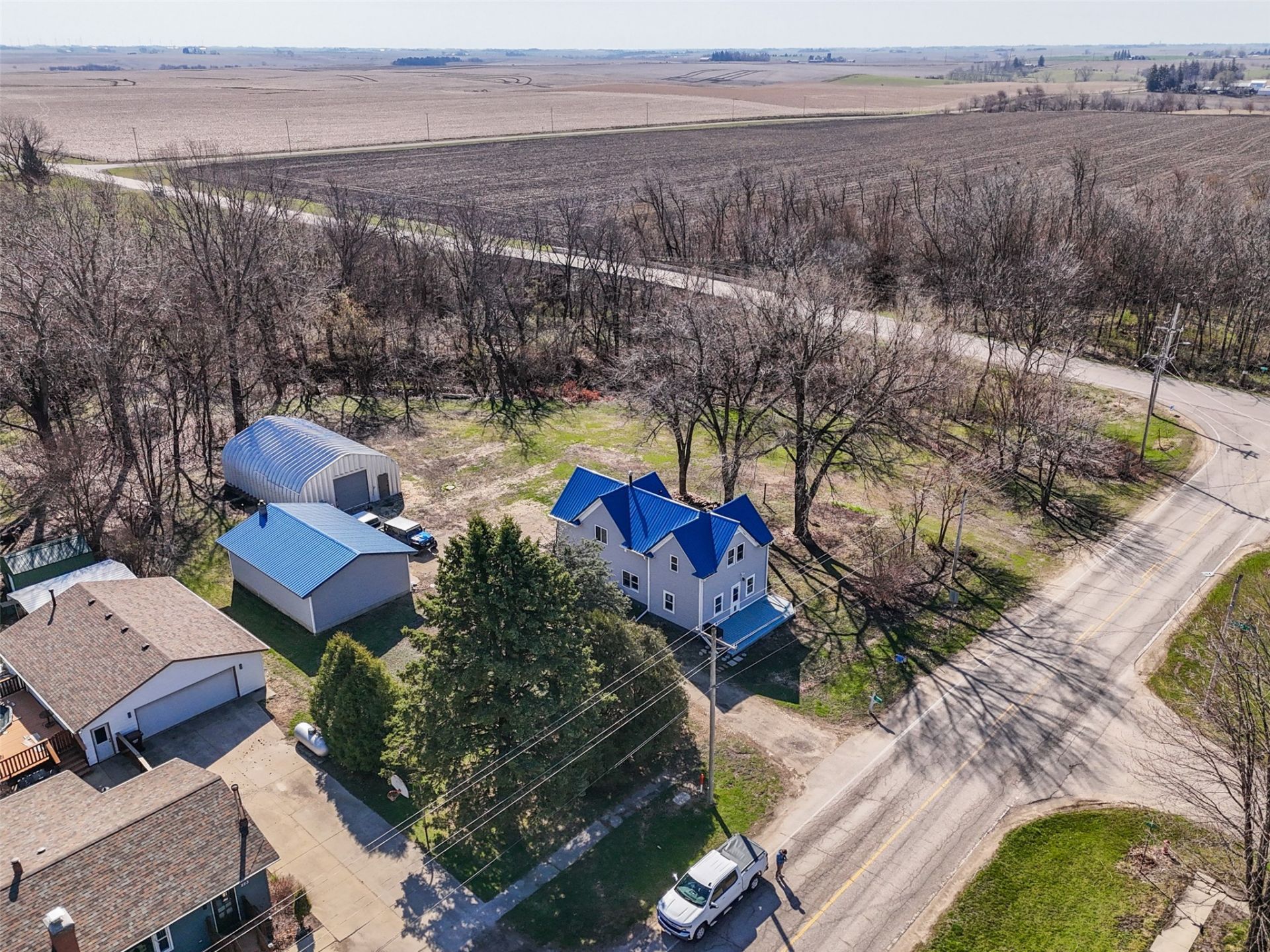 Embrace country living with small-town charm in this beautifully remodeled 3-bedroom home set on a tree-lined ¾-acre lot at the edge of town. With a large detached garage plus an enormous shop or additional garage space, there's room for all your hobbies, projects, and storage needs. Step onto the inviting front porch and into the spacious living room that flows naturally into a large dining area?perfect for gatherings. The updated eat in kitchen features a generous pantry and opens to a bright back porch that's ideal for a drop zone or sunny office space. Upstairs, you'll find three comfortable bedrooms and a full bathroom complete with a relaxing jacuzzi tub. Outside, mature trees offer privacy and shade, and the property backs to the nearby scenic Heart of Iowa Nature Trail for easy access to walking and biking. All this peaceful countryside living is about 30 minutes from Des Moines, Ames, Newton, and Marshalltown. Newer roof, siding, and gutters. Country serenity, updates galore, and an unbeatable location?this one has it all!