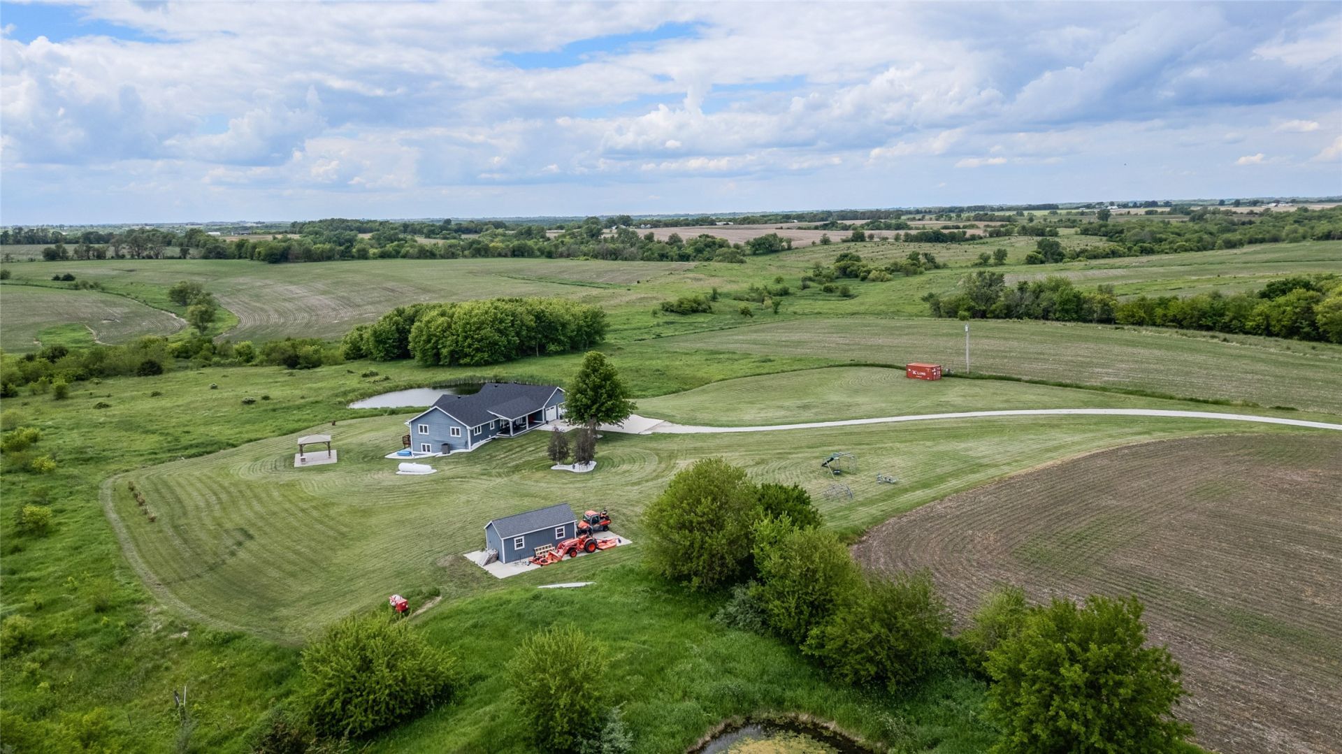 Over 4,000 square feet of finished living space on nearly 6.5 acres?offering a rare combination of space, updates, and setting just minutes from the Des Moines Metro. This 4-bedroom, 3-bathroom home features an open-concept main level with a spacious kitchen, center island, abundant natural light, and access to a large deck overlooking the property. A main-floor primary suite adds convenience and flexibility. The finished lower level includes a second kitchen, additional living space, office, storage, laundry, and a private bedroom with ensuite?ideal for guests or multi-generational living. The acreage features a private pond and usable outdoor space suited for recreation, entertaining, or future plans. Updates include windows, doors, siding, and major interior improvements. Septic system installed in 2015. Approximately 600 feet of gravel before reaching the home. A strong opportunity for buyers seeking space, functionality, and proximity to the metro.
