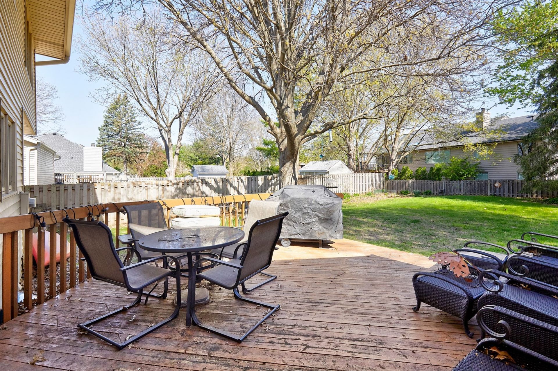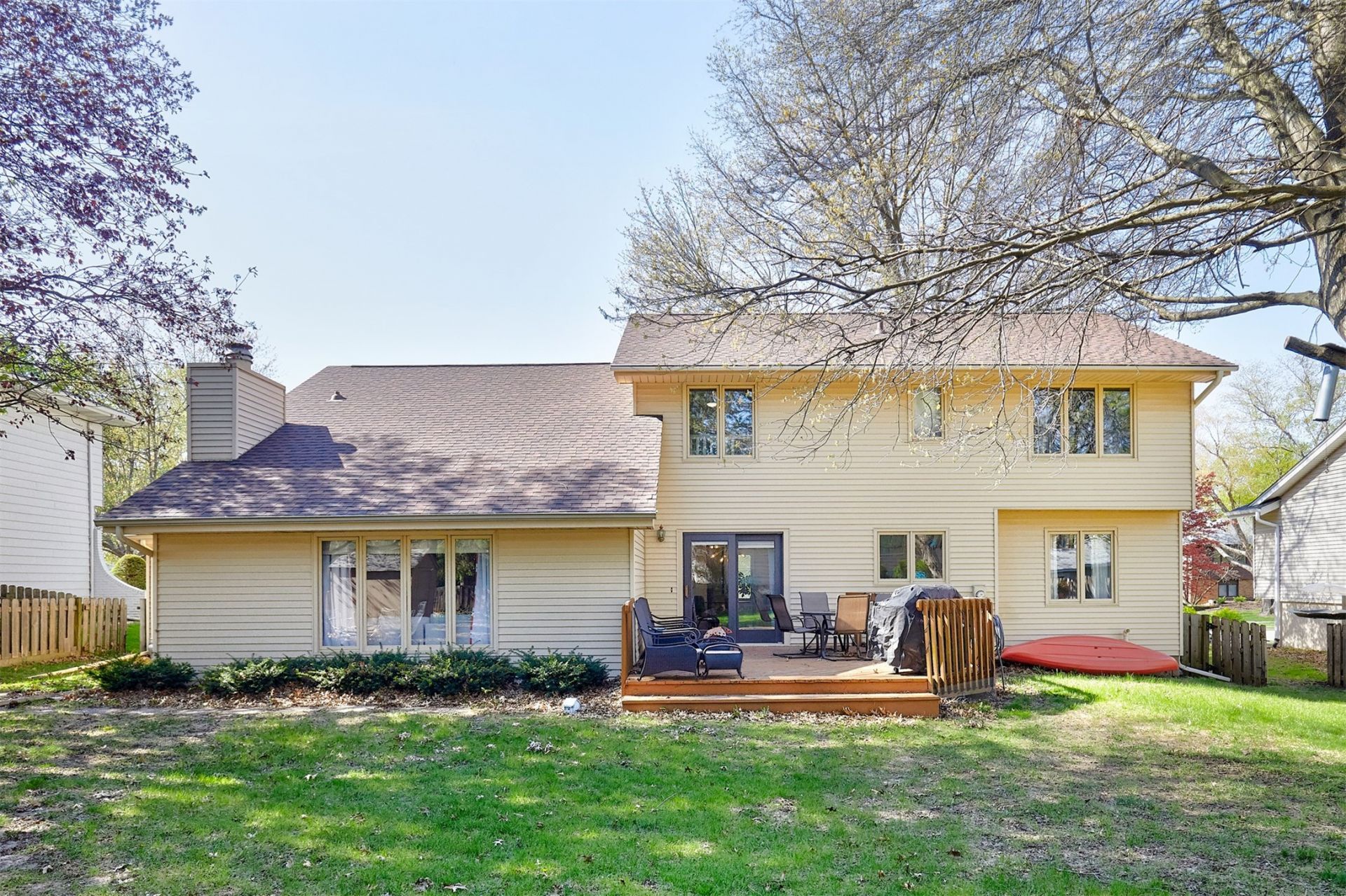 Updated two story residence situated in a sought-after West Des Moines neighborhood with hard to find 3 car garage, provides all the amenities you could want! Upon entering the new front door you will see tastefully updated LVT in the entryway that opens to a spacious living area that seamlessly flows into a formal dining room. The updated kitchen boasts stainless steel appliances, ample soft close cabinets and granite countertops. A second dining area off the kitchen leads to a deck with views of the mature landscaping and fully fenced backyard with newly built storage shed. Completing the main floor is a half bath and large family room with gas fireplace and wet bar. Upstairs, you will find the primary bedroom with walk in closet and updated 3/4 bath, along with three additional bedrooms and a full bathroom with new Pergo floors. The lower level has finished walls and flooring, offering additional living space. With steel siding, newer roof, gutters and leaf guards, the exterior requires minimal upkeep.