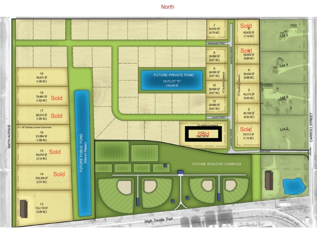 Welcome to Trailside Development in Slater! Here, you'll find the perfect blend of convenience and tranquility, with easy access to nearby cities like Ames, Ankeny, and Des Moines, all while enjoying the charm of small-town living. Imagine waking up in your dream home, nestled on a spacious lot overlooking a serene private pond. At Trailside, we offer multiple lots with picturesque pond views or established tree line lots, ensuring that each homeowner can enjoy their own slice of paradise. For those who prioritize an active lifestyle, Trailside has you covered. With future athletic fields nearby. Additionally, the nearby High Trestle Trail provides the perfect setting for biking enthusiasts to explore the beautiful Iowa countryside. At Trailside Development, we understand that your home is a reflection of your unique style and preferences. That's why we offer the flexibility for you to bring your own preferred builder to build your dream. Alternatively, our listing agents are available to guide you through the process of connecting with local builders who can turn your dream home into a reality.